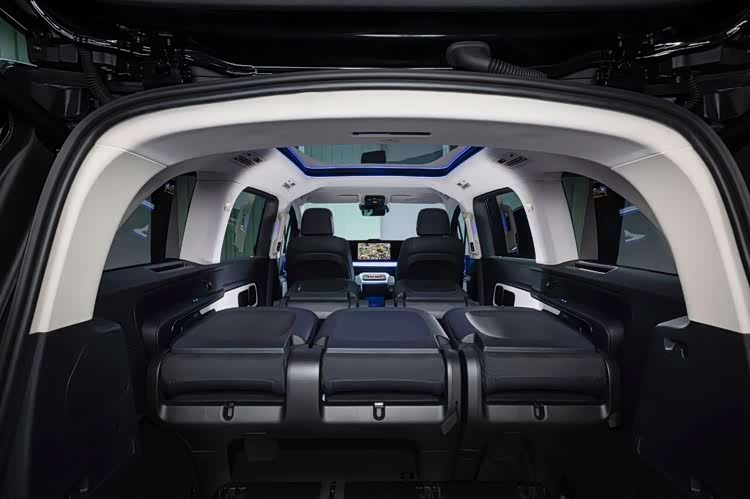 内饰设计延续Vision V概念车风格,配备10.25英寸驾驶员显示屏+14英寸中控信息娱乐屏以及14英寸副驾驶娱乐屏。后排娱乐系统配备一块31.1英寸的8K显示屏,可从车顶内衬翻转放下,同时集成800万像素摄像头,支持商务视频会议。