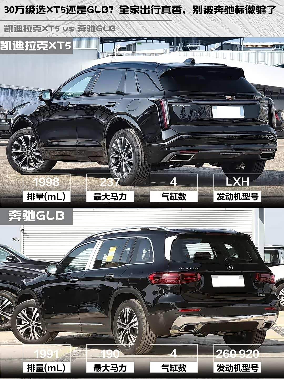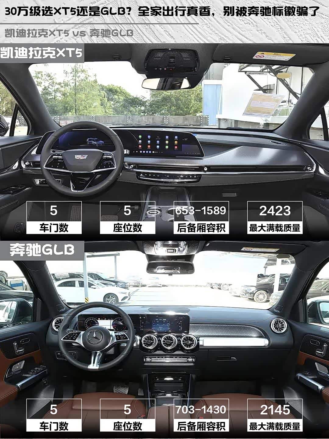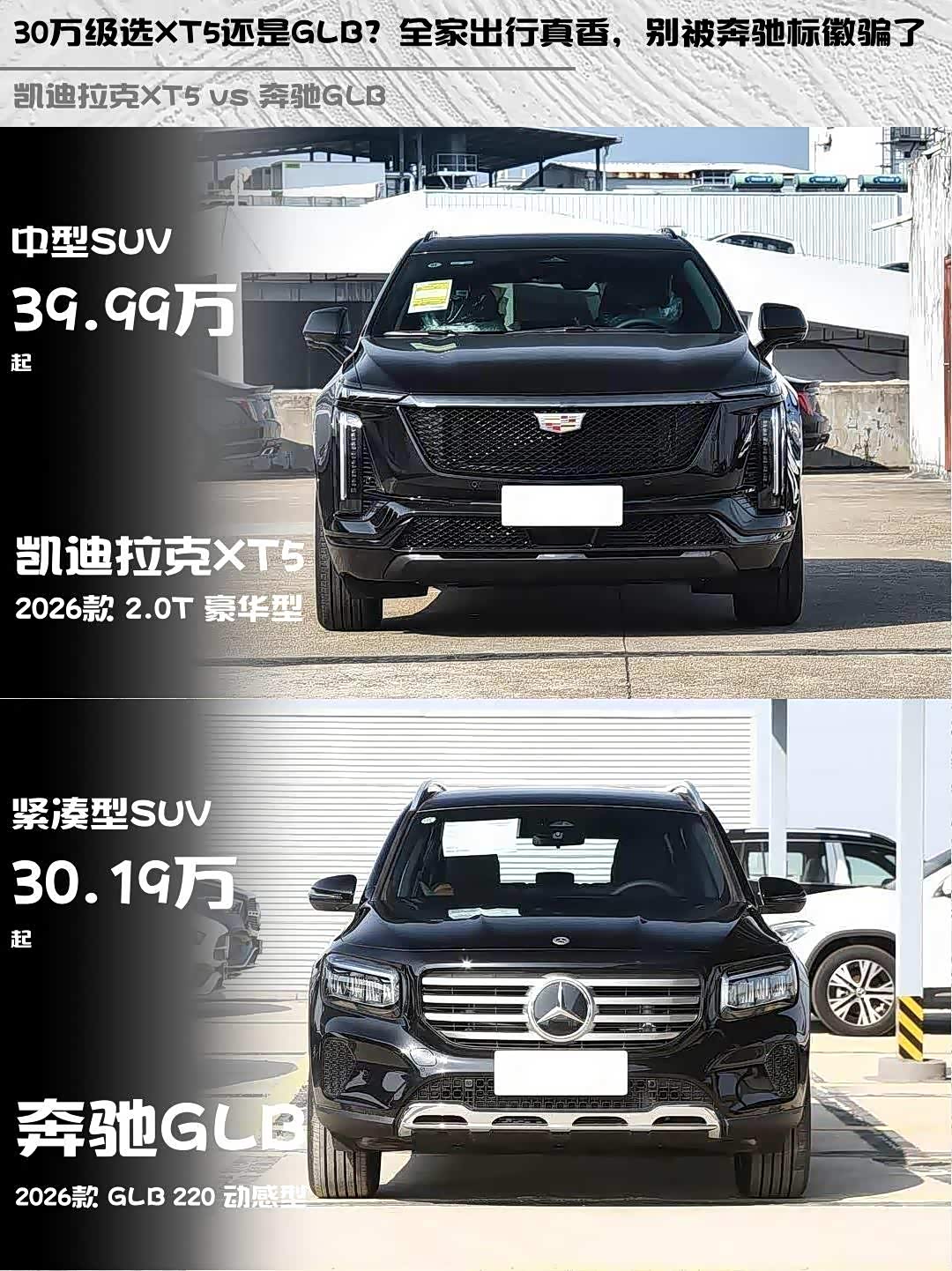 最近身边好几个朋友都在纠结30万级SUV怎么选,尤其是 凯迪拉克XT5(参数|询价) 2026款 2.0T 豪华型和奔驰GLB 2026款 GLB 220 动感型这两款热门车型。作为深度体验过两台车的“老司机”,今天就从实际使用角度聊聊它们的差异点👇