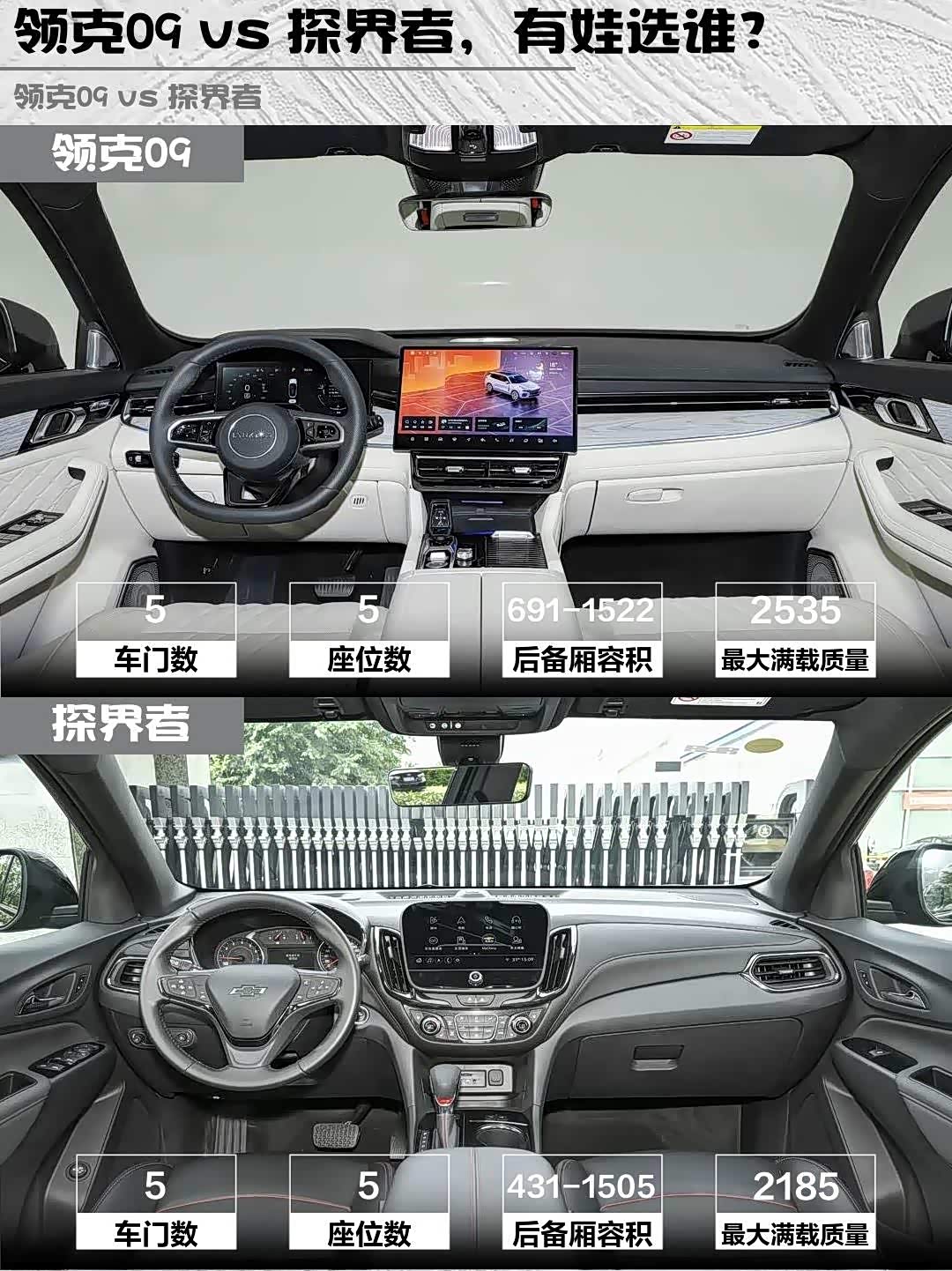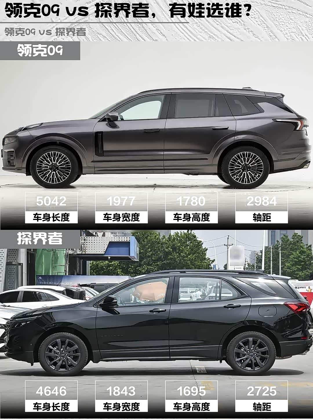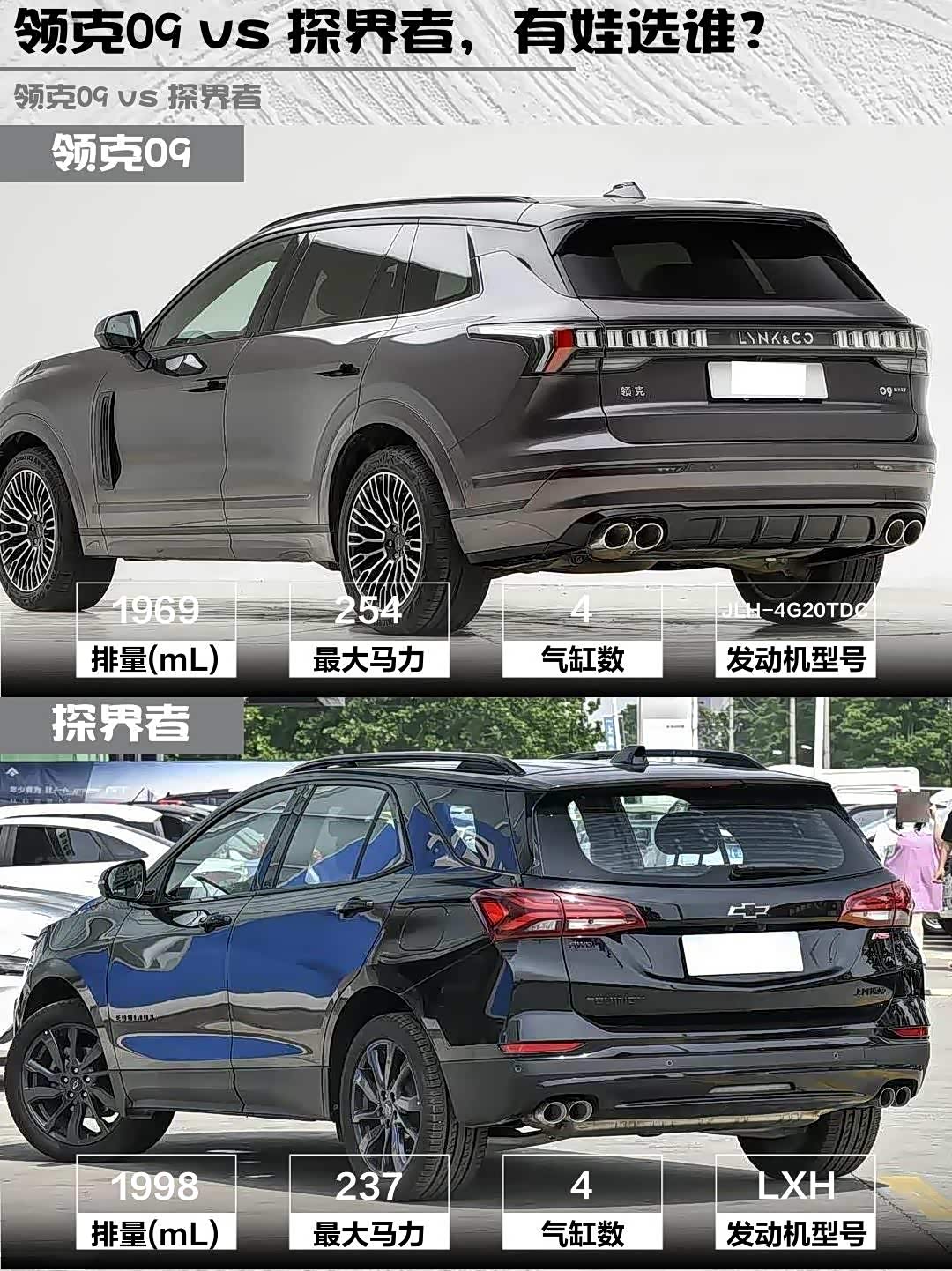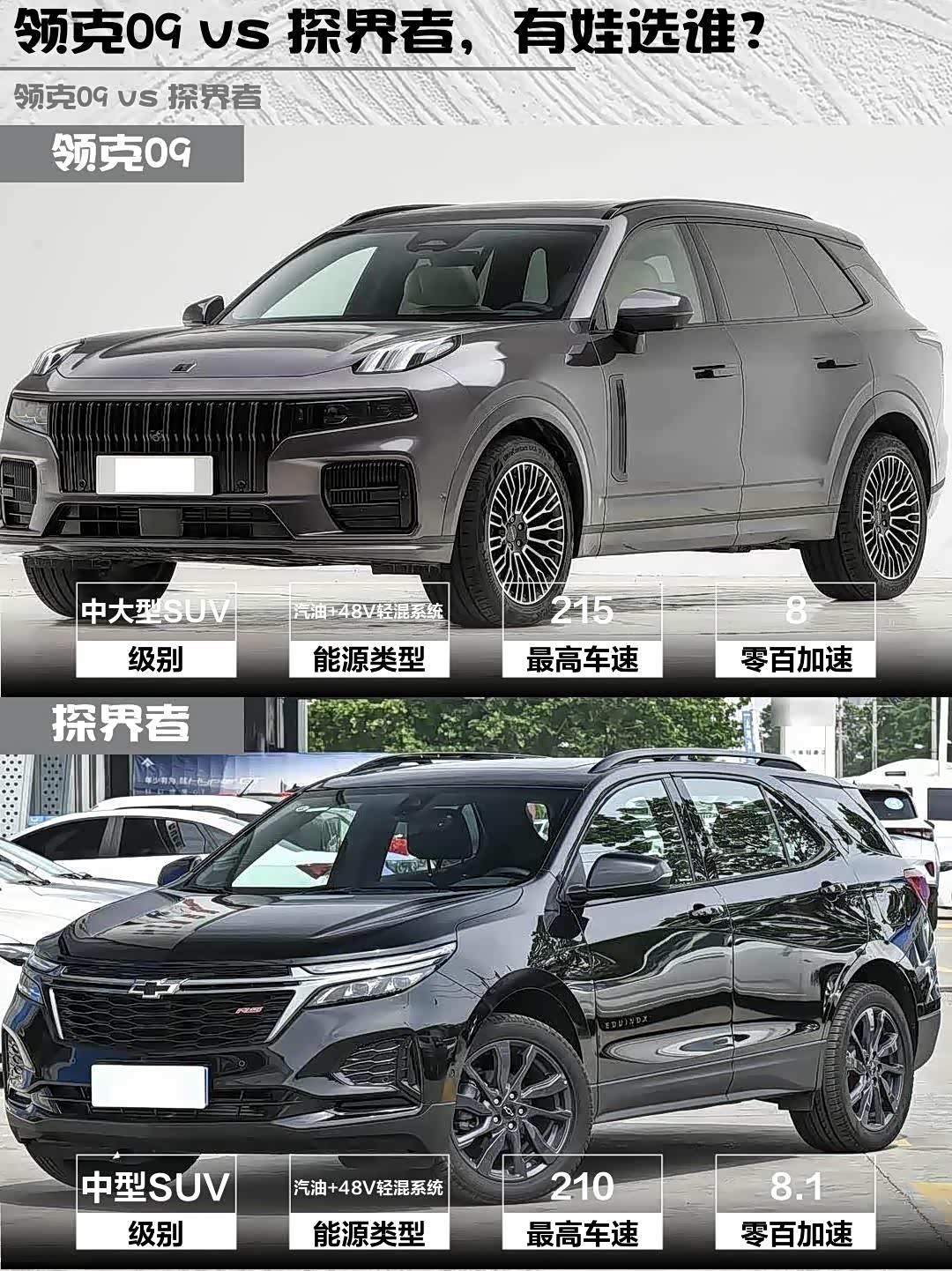 两台车性格差异明显,建议都去试驾!领克09像穿西装的运动员,探界者则是牛仔裤配马丁靴的硬汉,看你更吃哪套了~