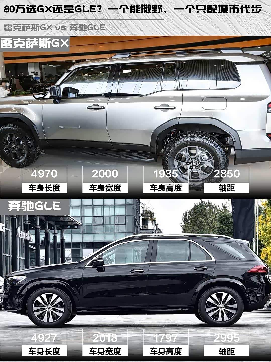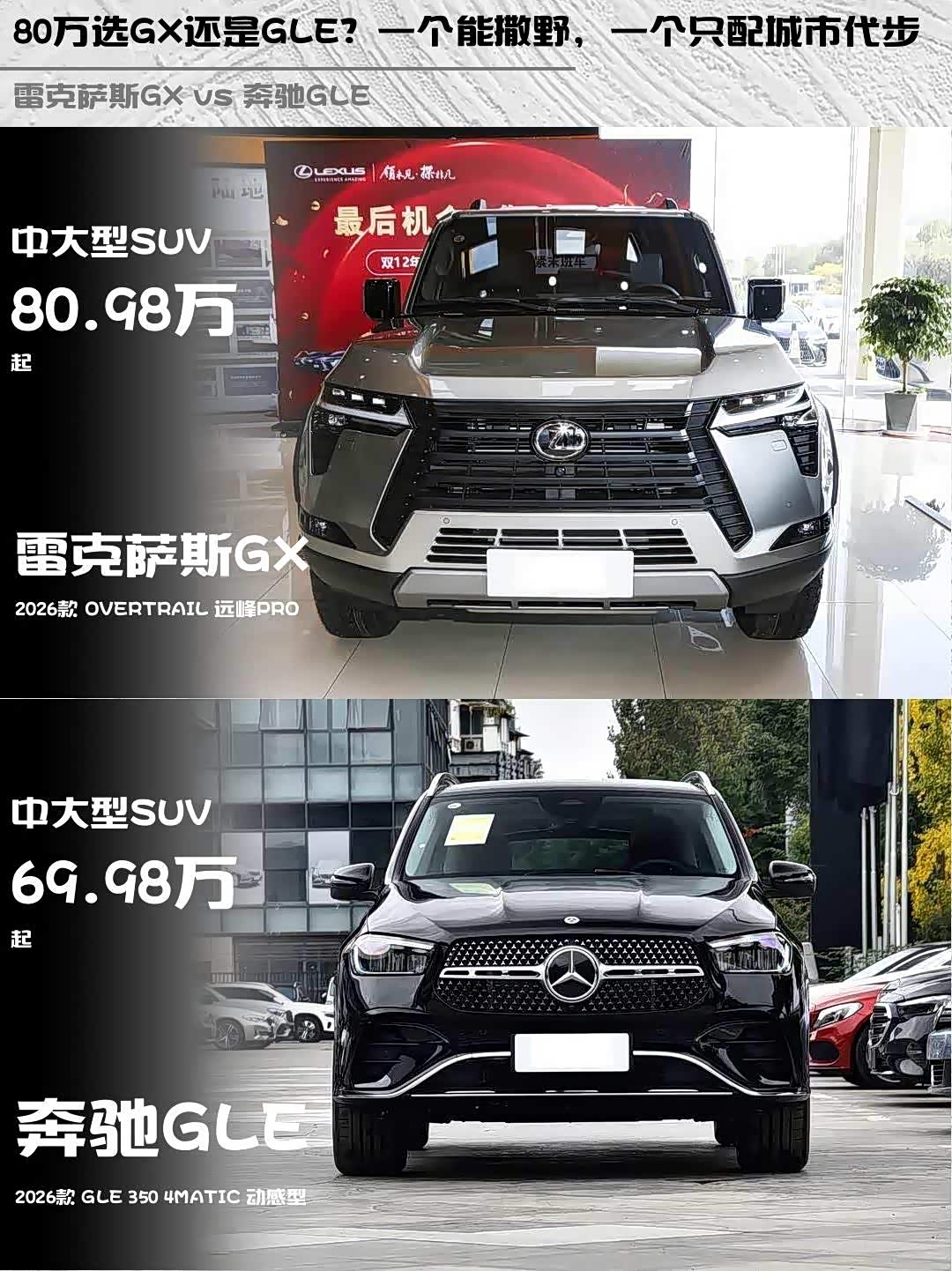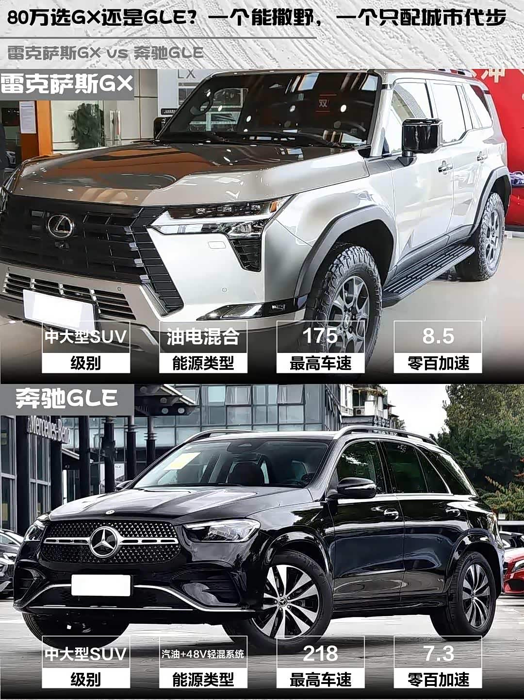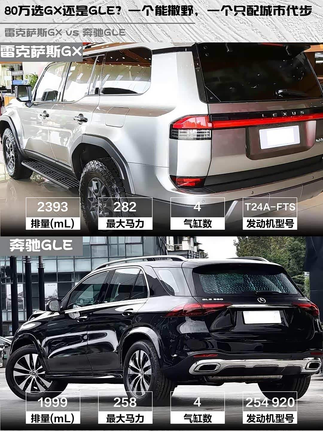 要豪华品牌溢价+城市精致感,选奔驰GLE不会错;但如果你周末常去非铺装路面撒野,或者喜欢方盒子造型的硬汉气质,雷克萨斯GX的越野血统更纯粹。毕竟80万买GX的人,谁还没点诗和远方的情怀呢?🌄