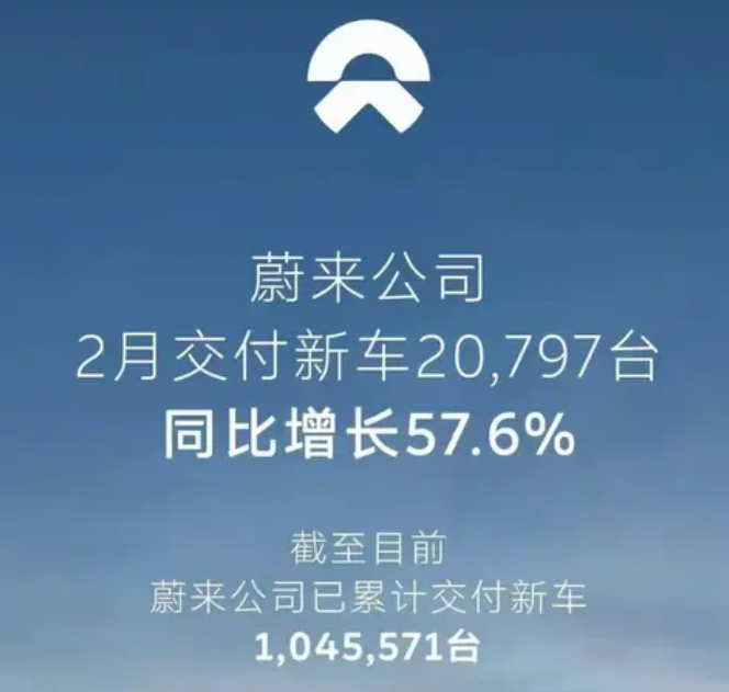 蔚来1月2.72万辆、2月2.08万辆,