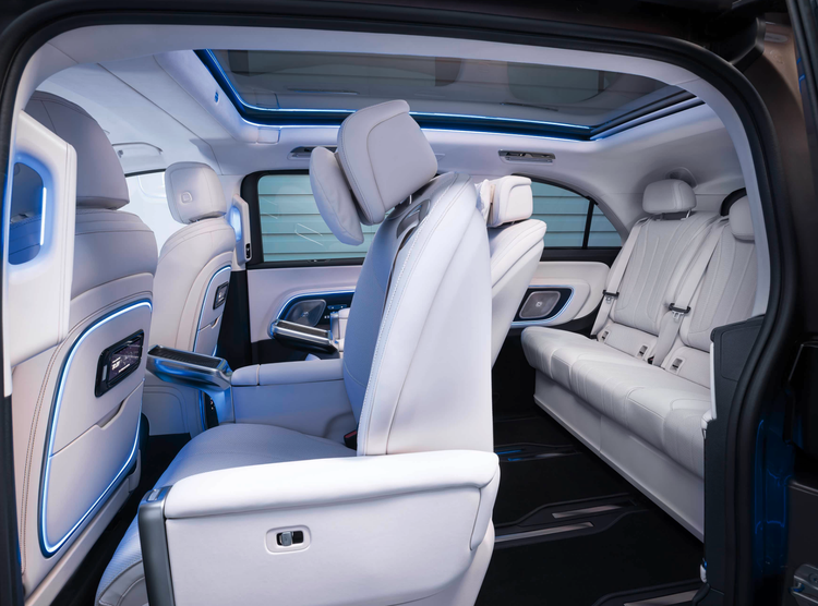 车辆分别提供5-8座的多种座椅布局,高配车型后排配备有31.3英寸的8K娱乐屏。为了让车内空间可满足用户不同场景的使用需求,车辆的二排座椅支持旋转,且设计了“Roll & Go”的座椅锁止、拆卸功能,可以任意拆卸座椅,并可利用座椅预留的滚轮推动座椅到放置区域。