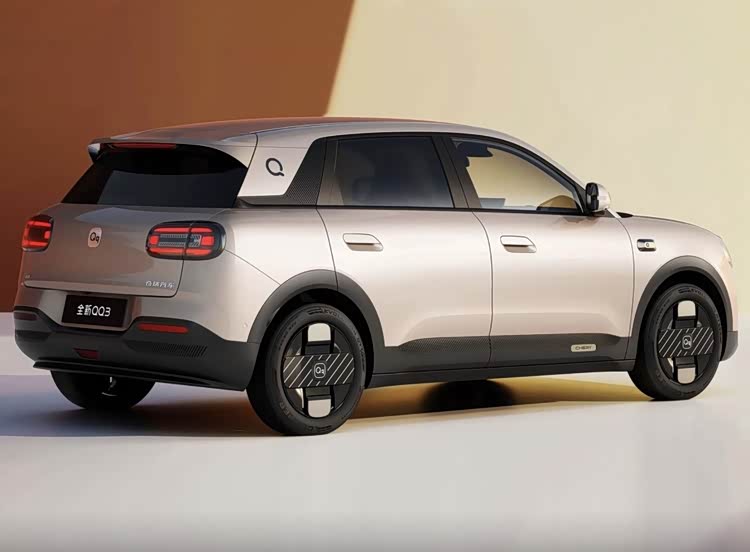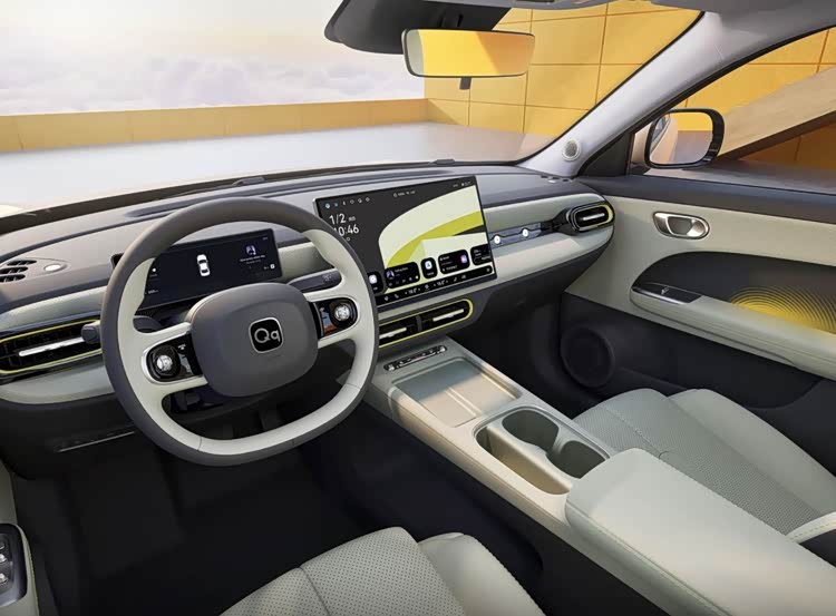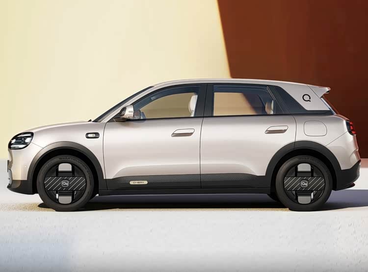 车身侧面线条柔滑流畅,采用半隐藏式车门把手与低风阻轮毂,有效降低风阻以提升续航,搭配黑色轮眉,时尚感与实用性兼具,黄金车身比例让小巧的车身不显局促。车身尺寸为4195/1811/1573mm,轴距达2700mm,凭借原生纯电平台的四轮四角设计,彻底打破小型车空间局促的固有印象。车尾延续圆润造型,Q型LED尾灯与前大灯呼应,整体造型灵动精致,兼顾颜值与实用性。