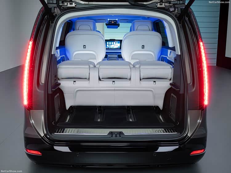 Vision V概念车发布后,奔驰超前的设计引来外界争议。至少对我而言,VLE确实比概念车收敛,融入奔驰全新家族语言,无论GLC EV同款中网、CLA风格贯穿式日行灯,还是新S级三叉星大灯,都呈现了新鲜视觉元素。而且VLE也具备前瞻细节,比如机盖两条筋线就传承自Vision V,点阵光源倒U型尾灯也还原了概念设计,颇为醒目。不过奔驰放弃水滴般的轮廓,让VLE更贴近主流MPV造型,但流畅线条结合隐藏门把手、卡姆尾部,还是让VLE的风阻系数降至0.25Cd,和MEGA不算太远。