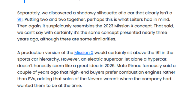 关于这款可能的旗舰车型,业界普遍将其视为2015年停产的918 Spyder混动超跑的精神续作。虽然官方尚未公布任何技术细节,但外界猜测其很可能不会采用纯电驱动。考虑到高端买家对燃油发动机的偏好,以及合作伙伴锐马克(Rimac)旗下纯电超跑Nevera市场表现平平的前例,这款新车更有可能搭载高性能的燃油或混合动力系统。
