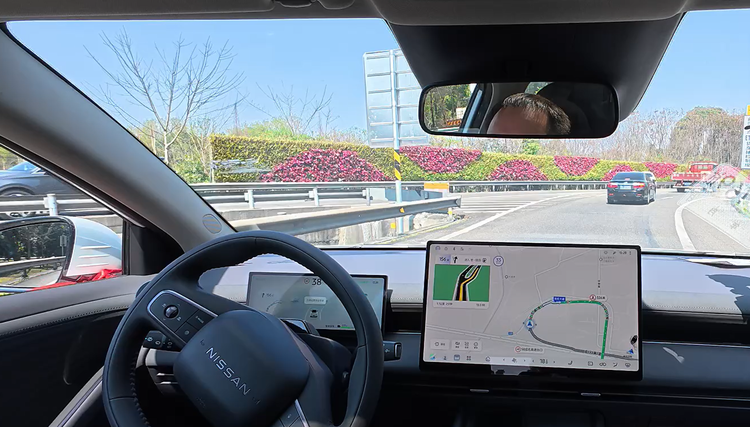 同时,自动变道超车是NOA功能的核心亮点,也是最能体现其“老司机逻辑”的地方。在实测中,我们这台东风日产N6即便是在标准模式下,整体超车逻辑也是偏激进、或者说果断的。不管是在中间车道遇到慢车,还是在超车道遇到慢车,只要系统确认具有安全间隙,车辆就会打灯变道完成超车,整个动作一气呵成,没有生硬的“咯噔”感,体感上非常接近熟练驾驶员的操作。坦白说,即便是某些搭载激光雷达的车型,在超车道遇到慢车时,也未必有如此果断超车动作。这也足以说明,Momenta的这套辅助驾驶方案确实功力深厚。