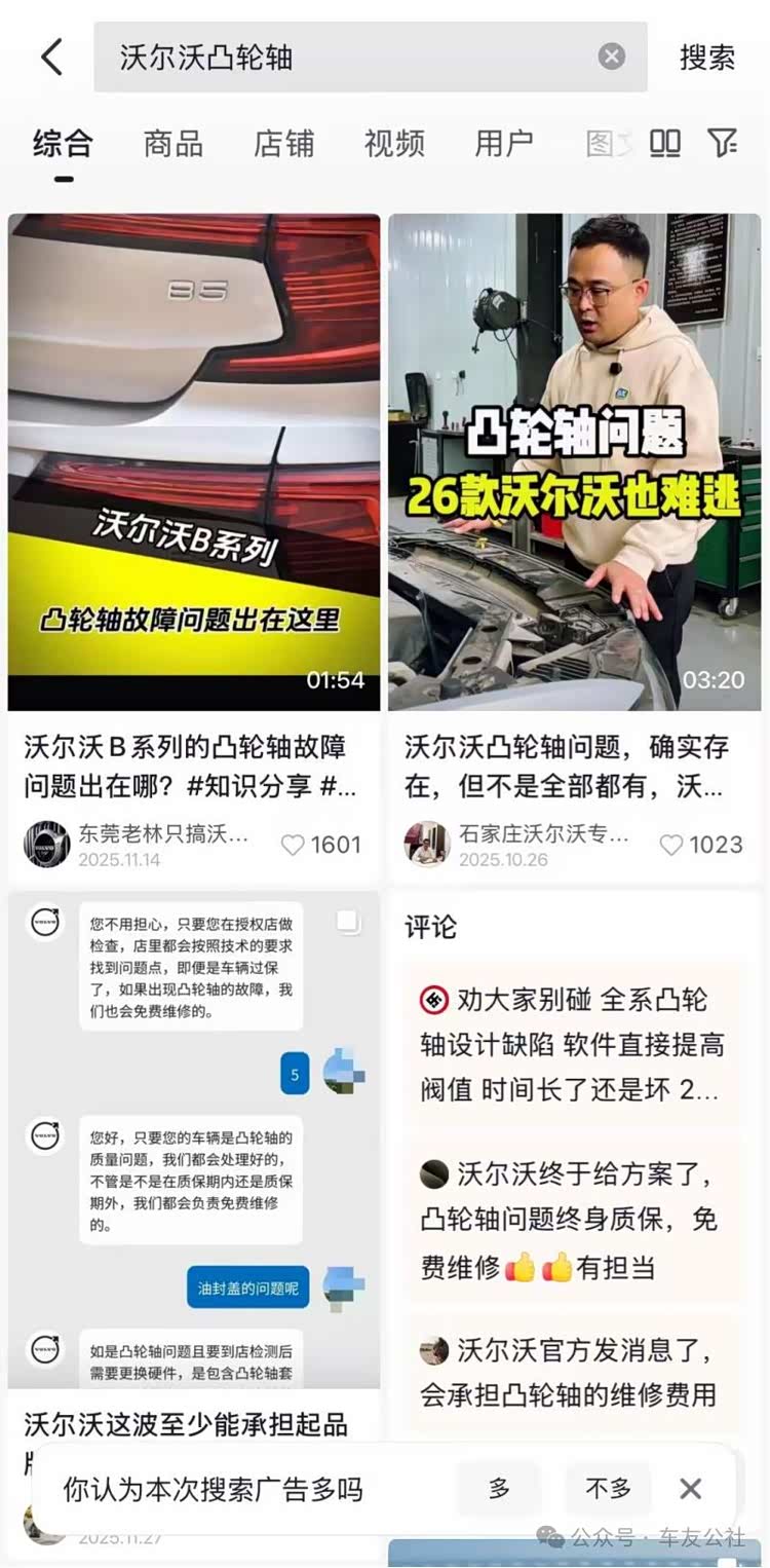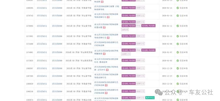 车友公社调查发现,陈先生的遭遇并非个例。随着2026年3.15的临近,沃尔沃凸轮轴故障投诉已演变为全国范围内的集中爆发,涉及2022款至2025款多款主力车型。面对车主维权浪潮,沃尔沃仅推出“免费更换凸轮轴”的单一方案,拒绝额外补偿与召回。