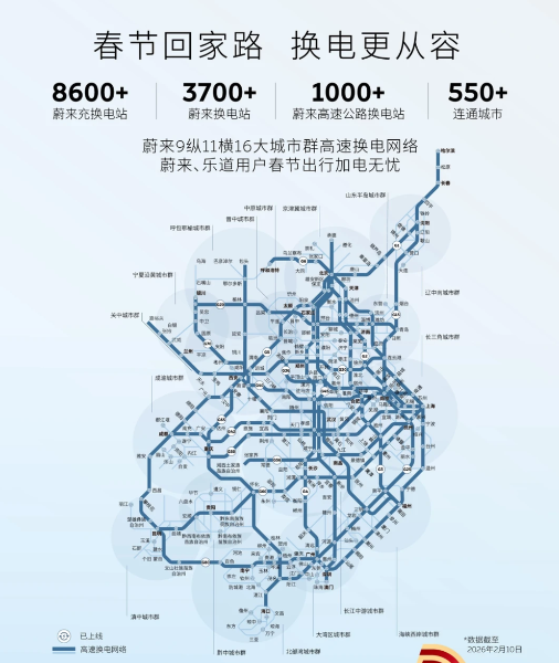 更关键的是补能体系的质变:依托蔚来能源成熟的“九纵十一横”网络,乐道已实现高速换电全覆盖。今年春节前完成的“电池翻倍计划”,让换电站电池储备大幅提升,哪怕在用车高峰时段,也能实现了“3分钟满电出发”。