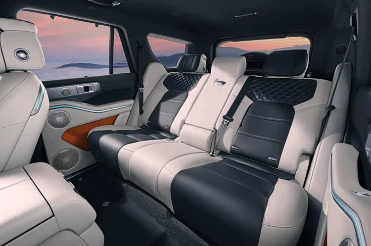配置方面,前排配备全液晶仪表盘与大尺寸悬浮式中控屏,搭配三辐式多功能方向盘。材质运用上,座舱大面积采用软性材质包裹,座椅为双拼色设计,表面点缀菱形纹造型,填充厚实饱满。此外,新车后排还配备可翻折吸顶屏、天窗以及二排隐私帘等。