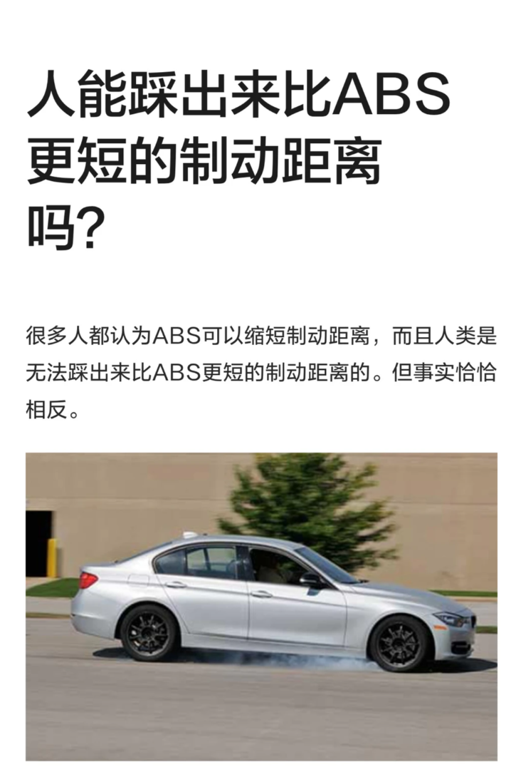 但必须明确的是,“人类能踩出更短制动距离” 只是极限能力的比拼,并非实际驾驶中的常态。能做到这一点的,都是经过大量练习、对刹车力度把控极致精准的资深驾驶员,且大多是在提前准备、路况理想的测试环境下实现。而实际道路驾驶中,突发的危险不会给驾驶员留任何准备时间,慌乱之下,普通人根本无法精准控制刹车力度,甚至会因过度踩刹车导致车轮抱死、车身失控。反观 ABS 系统,即便无法达到制动的极致状态,却能稳定发挥出顶尖制动能力的 80% 以上,成为普通驾驶者的 “安全兜底神器”。