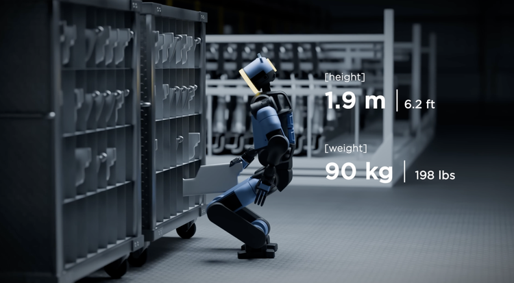 这款人形机器人专为工业制造需求而打造,身高1米9,体重90公斤,外观上牺牲了部分拟人性以换取更强的重心稳定性和移动性能。