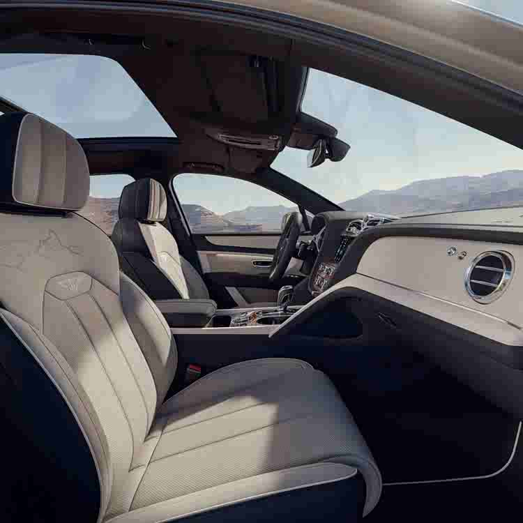 车型专属配置包括独特的“Roque Bentayga”山峰图案,以蚀刻工艺呈现于仪表板,并通过激光穿孔工艺镌刻于座椅与车门之上。其标配多项MULLINER核心配置,包括22英寸灰色喷漆抛光轮毂与MULLINER双菱形前格栅。外观方面,车身下部饰件提供八款与车身同色的配色方案,赋予添越车型极具现代感的简约侧影美学。