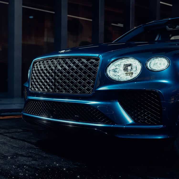 若追求更具运动感与现代感的风格,璀璨蓝(Sequin Blue)外漆是理想之选,搭配炫黑套件(Blackline Specification)亮面饰件、辐条内侧饰面采用花岗岩灰设计的亮黑轮毂以及黑色刹车卡钳。打开驾驶座车门,映入眼帘的是亚麻白主皮革、鲸鱼黑辅皮革,以及醒目的浅蓝色(Light Blue)强调色。该强调色出现在仪表板底部、中控台周围、座椅刺绣宾利徽标以及方向盘辐条之上。