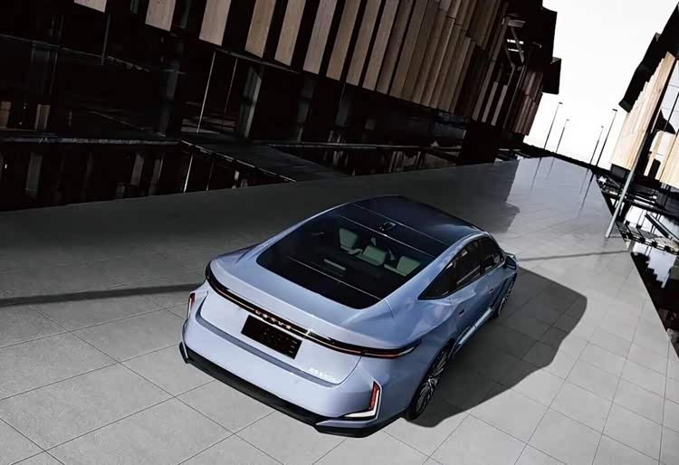 车身侧面,黑色饰条勾勒的侧裙线条极具视觉冲击力,强化整车运动氛围。新车还配备隐藏式电子门把手与溜背式车身,进一步优化空气动力学表现。车身尺寸方面,该车长宽高数据中长度为5140mm,轴距达2950mm;混动版搭载18英寸轮毂,轮胎规格为235/60 R18,纯电动版则配备21英寸轮毂。