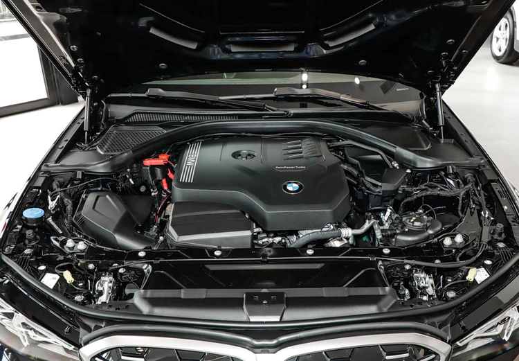 打开发动机舱,这台B48系列的2.0T涡轮增压发动机配采埃孚的8挡手自一体变速箱,纵置后驱界的黄金搭档。