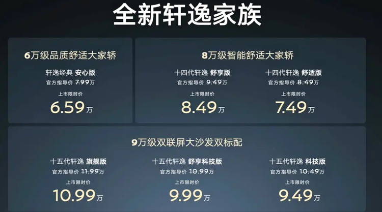 与此同时,随着时间的推移,第十五代日产轩逸在2月24日正式上市。相比第十四代,新车的指导价来到10.49万起,限时优惠后的价格为9.49万起。此外,新一代日产轩逸的外观内饰也采用最新的设计语言,整体看上去明显更加年轻时尚,也更符合当代年轻消费者的购车需求。