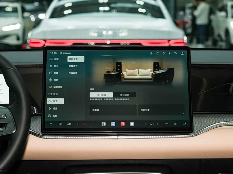 来到车内,整体风格主打的是科技简约风,环抱式中控台搭配内嵌式8.8英寸仪表和15.6寸中控屏。配置上丝毫不含糊,手机无线充电、前排座椅通风加热、一体式智能冷暖冰箱、31色氛围灯等等硬件配置均一应俱全。此外,还能实现无麦K歌功能,驾乘体验上无论是舒适性还是娱乐性都得到了提升。车机搭载的是高阶版-DiLink 100,支持手机互联、导航流转、大屏观影、整车OTA远程升级,还有智能防晕车功能、萌宠、3D动态裸眼主题等诸多功能,操作起来的流畅度与功能性都十分优秀。