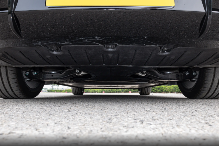 底盘是前双叉臂+后五连杆独立悬架,还配上了空气悬架+采埃孚CDC可变减震。开起来就很舒服:空气悬架会自动调高低,速度快、过减速带就降低,更稳,烂路就升高,不容易托底。CDC减震实时调软硬,小震动基本都滤掉,过弯又很稳,侧倾很小。