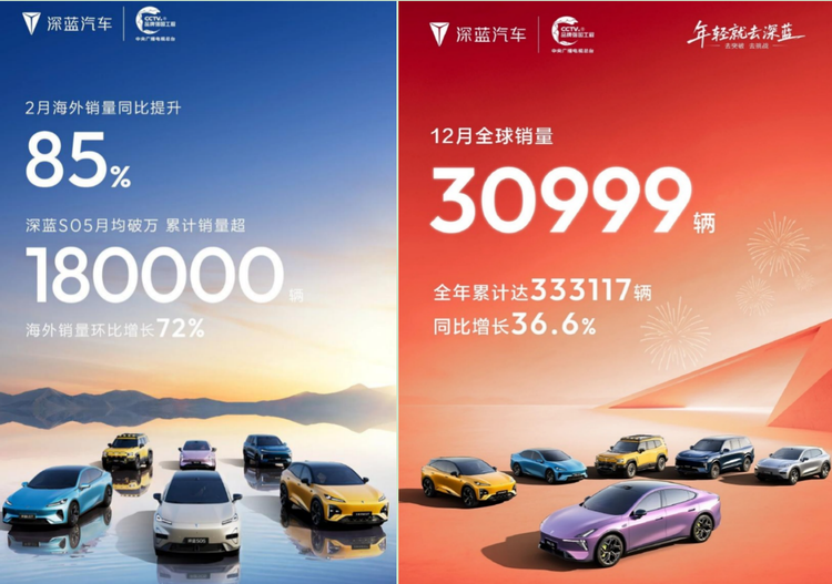 当长安启源高调公布2月销量18300辆、环比暴涨96.3%的亮眼成绩,比启源更早入场、手握长安集团技术、供应链、渠道三重王牌的深蓝汽车,却陷入了前所未有的尴尬境地。1 月交付24575辆车,官方只敢强调同比34%的增长,对环比大幅下滑的核心数据讳莫如深;2月更是彻底隐匿了国内销量,只拿海外销量同比提升85%的数字遮羞。