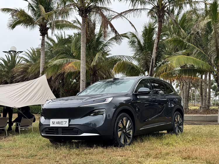 外观上,至境E7采用俯冲封闭式车头,突出的“车鼻”与上扬“C”形日行灯,视觉张力十足。“7”字形大灯融入璀璨星河元素,搭配梯形熏黑下格栅与镀铬前铲,豪华又霸气。车顶激光雷达预示其搭载Momenta R6大模型,全场景辅助驾驶功能值得期待。
