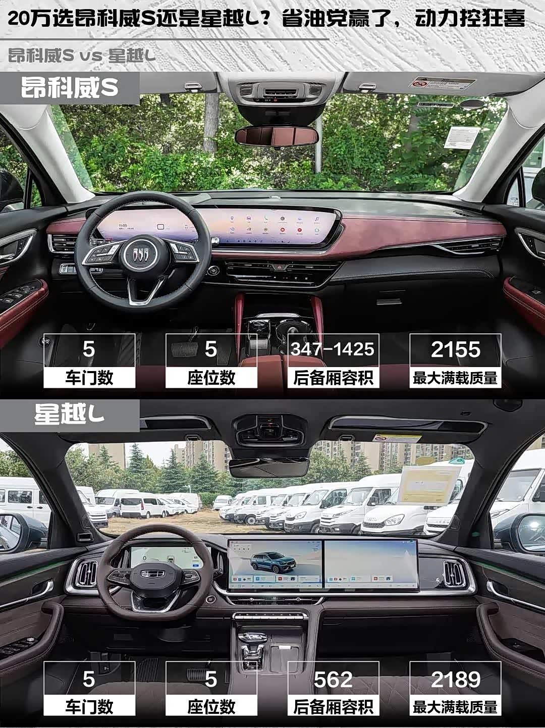 要豪华质感+省油选昂科威S,要动力空间+科技感选星越L。我自己最后选了昂科威S,毕竟每天通勤油耗和静谧性太重要了,而且那套底盘过减速带的高级感真的上头!