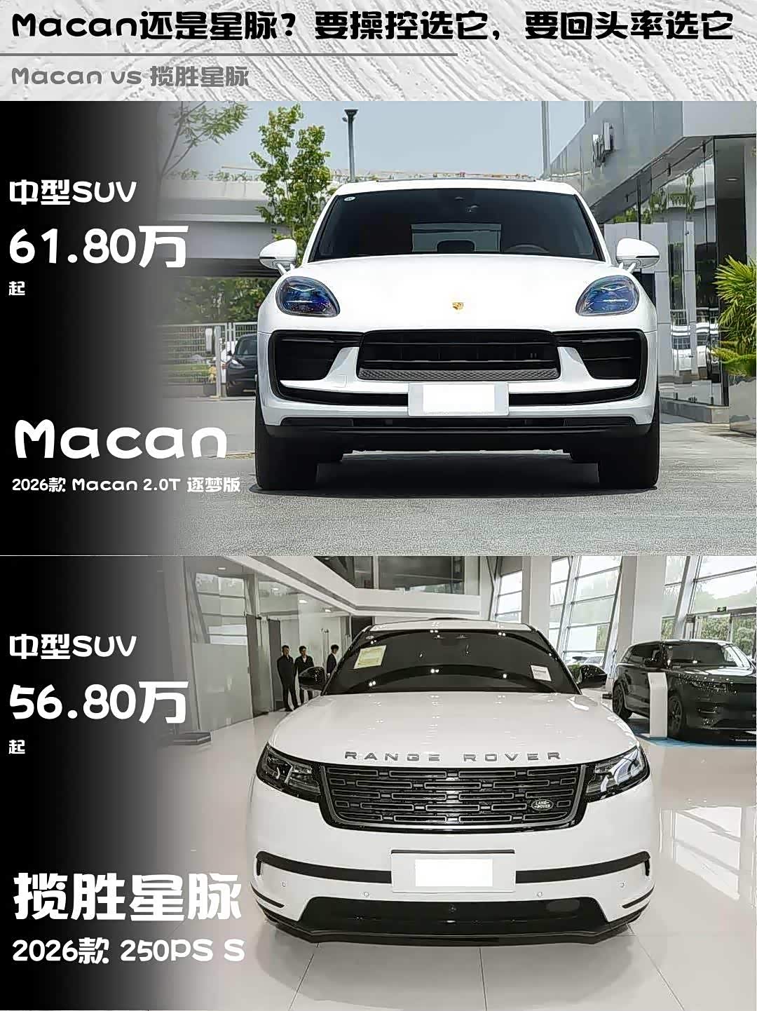 车家号·0浏览·2026-03-13 08:36 · 北京保时捷Macan(参数|询价) 2.0T逐梦版 vs 路虎揽胜星脉250PS S,60万级豪华SUV怎么选?🤔