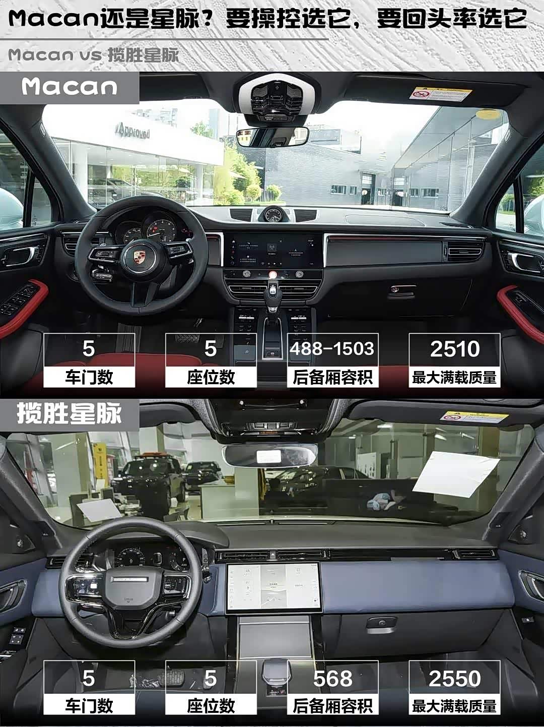 最近后台好多兄弟问这两台车怎么选,今天直接上干货!先说结论:要驾驶乐趣选Macan,要颜值气场选星脉。但细节差异可不止这些👇
