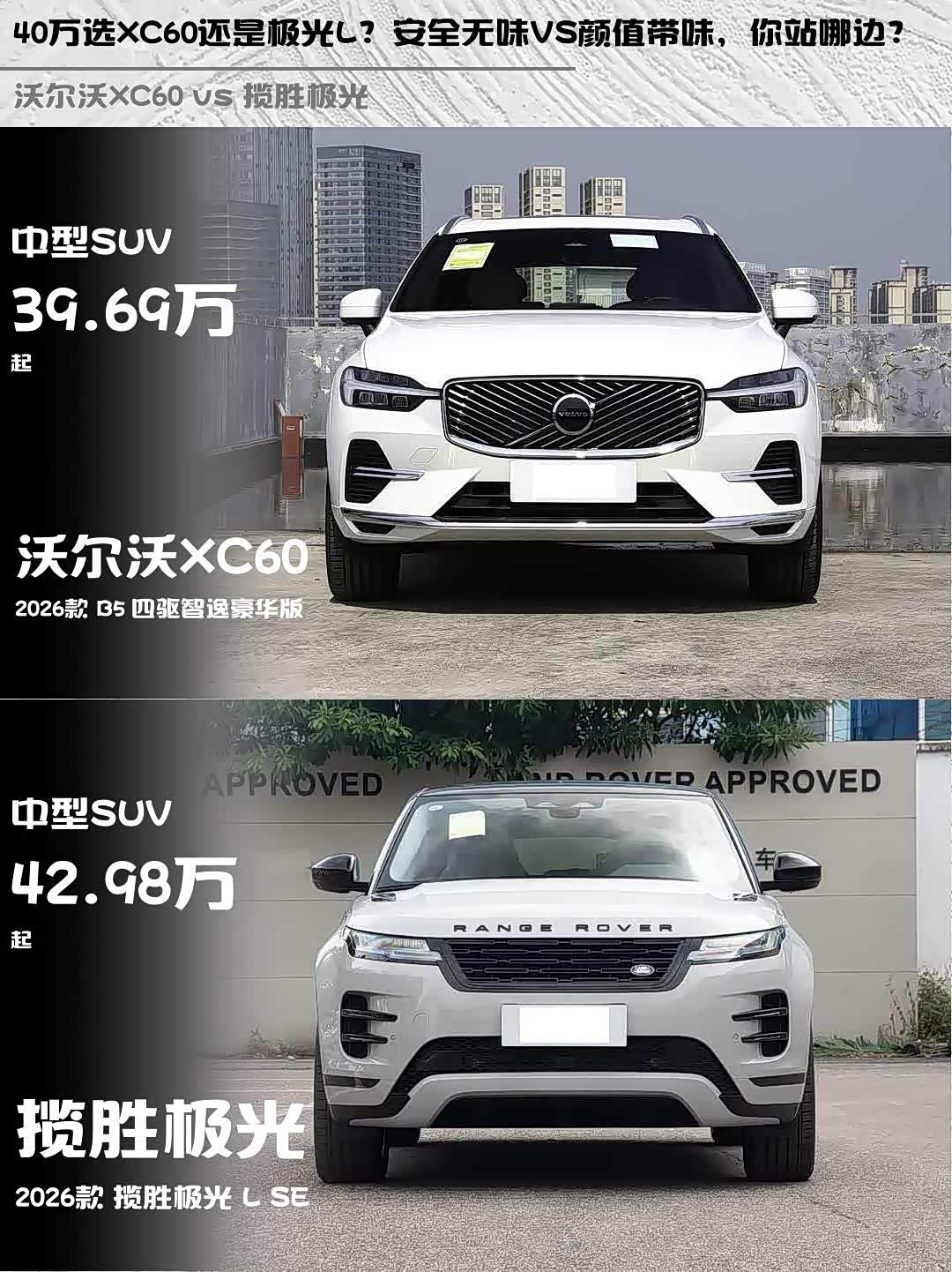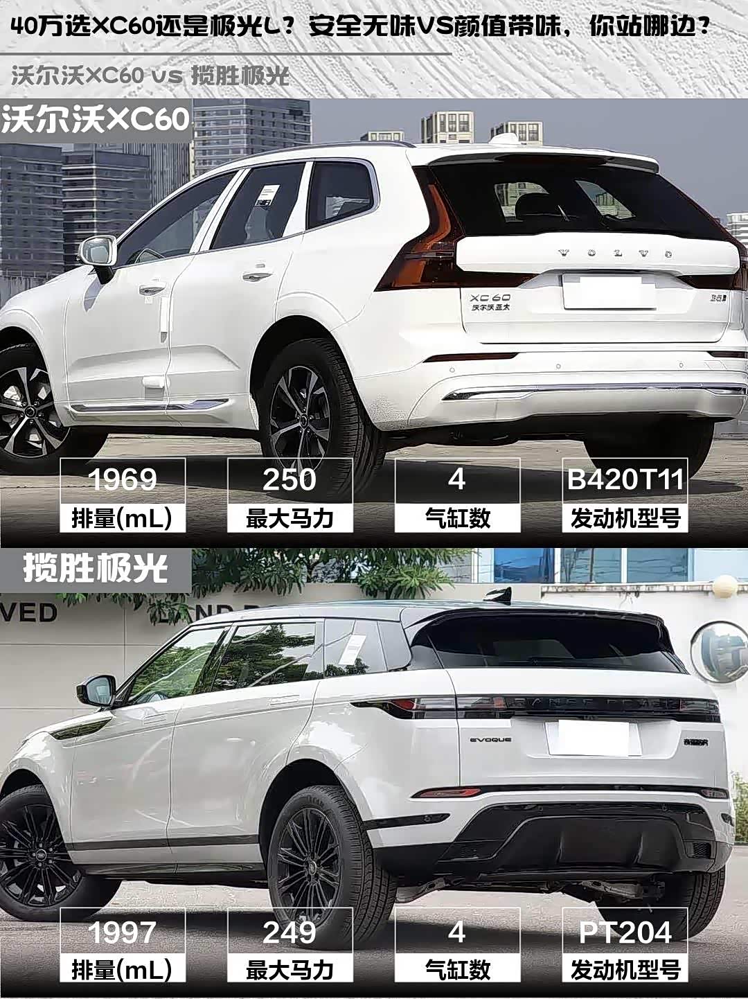 车家号·0浏览·2026-03-13 08:41 · 北京最近身边好多人纠结 沃尔沃XC60(参数|询价)和揽胜极光L,作为两款40万级豪华SUV,到底该怎么选?今天就从真实用车角度帮大家分析一波!🚗💨