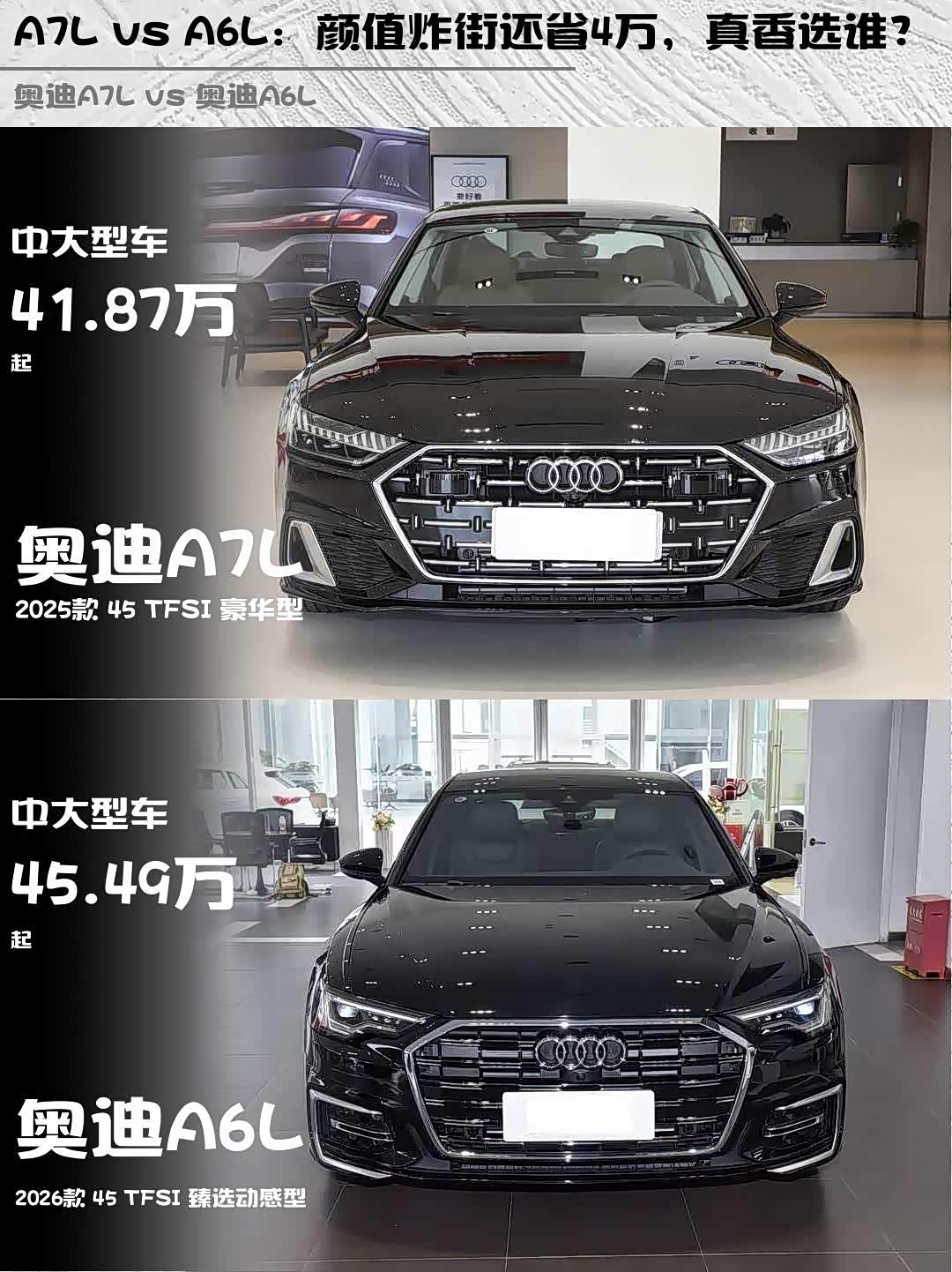 A7L vs A6L:颜值炸街还省4万,真香选谁?