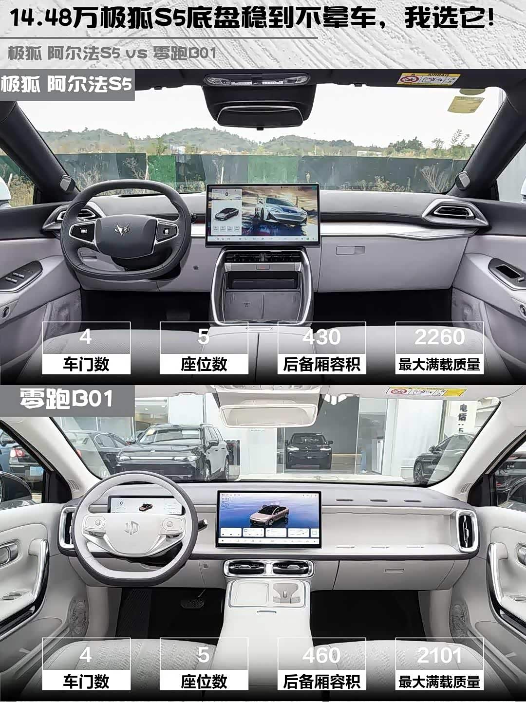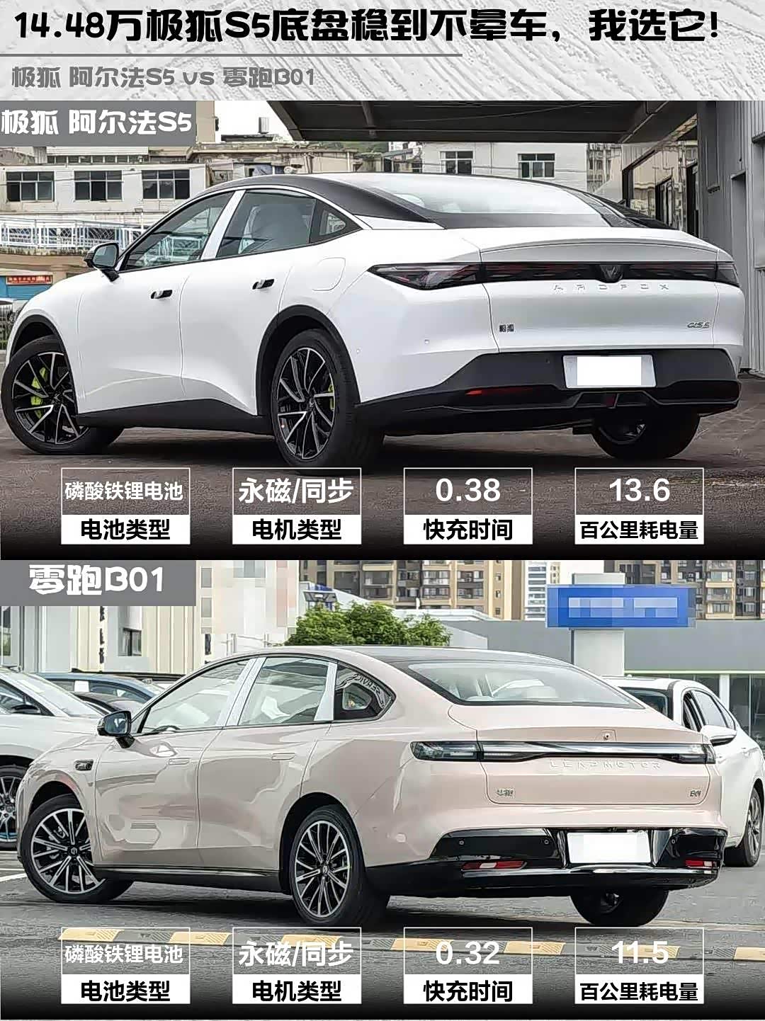 总结:要操控质感选极狐阿尔法S5,要续航性价比冲零跑B01。我最后选了极狐,毕竟每天通勤80公里,底盘稳才不会晕车到吐...你们会pick哪款?