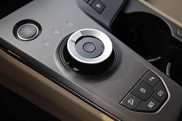 中控台中间的部分进行了完全重构,旋钮式的换挡机构被移到了更靠近驾驶员的位置,前面是发动机一键启停的按钮(怕误触的用户可以考虑给这里粘贴一个翻盖装饰件),后面则是一些行车辅助功能的实体按键。最重要的是,这里的装饰面板终于也更换成了哑光的条纹款,不沾指纹也不怕磨损,非常好!