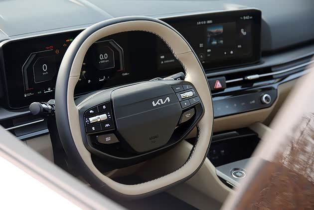 新款的双辐式方向盘必须好评,首先是与内饰整体非常搭配的内外双拼配色,其二是上下两端的平直设计,凸显运动感并减少了空间(尤其是腿部)占用,第三则是充盈的抓握感,从掌底到指尖都能得到来自方向盘的回馈,最后则是大尺寸的按键以及拨杆+滚轮的组合,降低了盲操作的错误率,也更符合不同功能的控制逻辑(比如用滚轮调整音量就比拨杆来的爽快)。