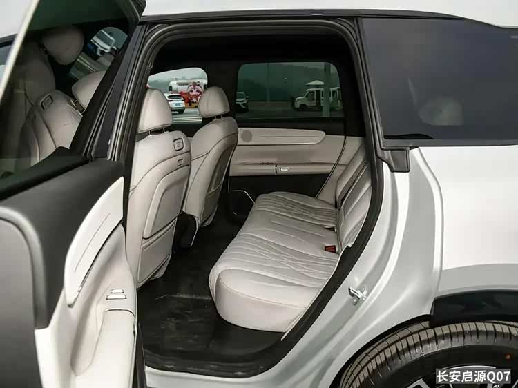 长安启源Q07的后排,是我没想到的惊喜。2905mm轴距带来的腿部空间超过1米,我178的身高翘着二郎腿,膝盖离前排还有两拳。后排座椅宽度1420mm,坐垫深度522.8mm,厚实得像家里的沙发。