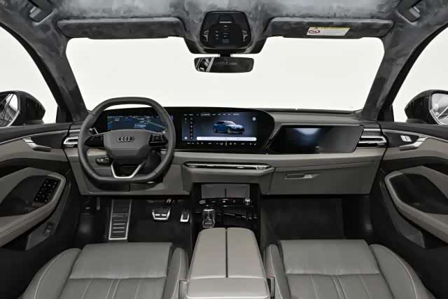 车厢内部,全新奥迪A6L换装奥迪最新一代的家族式设计风格。仪表台为11.9英寸仪表屏+14.5英寸中控屏+10.9英寸副驾屏的三屏组合,方向盘为上下平底的三辐式方向盘,后方带有换挡拨片,仪表台上方还带有W-HUD,能够呈现导航、辅助驾驶等车况信息。
