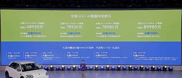 奇瑞QQ3 EV预售:AI灵犀智舱+猎鹰500智驾