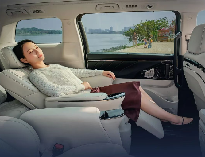 在舒适性方面,2026款传祺M8 HEV采用2+2+3七座布局,一排座椅支持加热、通风、按摩,第二排独立头等舱座椅支持加热、通风、按摩、腿托调节,长途乘坐不疲劳。第三排空间宽敞,不会局促压抑,商务接待、家庭旅行均可轻松拿捏。