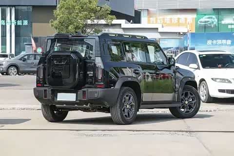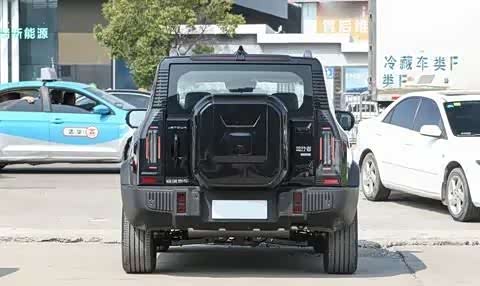 捷途旅行者的车尾设计方正硬朗,车顶上的细长刹车灯独特而耐看。两侧竖置的尾灯采用大面积熏黑配色,内部精致光源与前大灯相呼应,点亮后极具辨识度。侧开式尾门搭配小书包式备胎设计,硬派越野风格更加凸显。