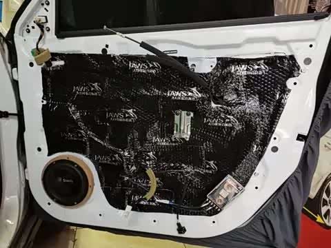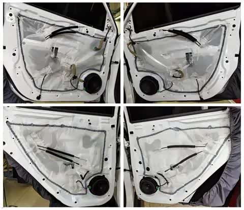 改装步骤一:在进行喇叭安装前,首先对车门进行隔音处理,以减少车门金属板的共振噪音,使车门形成一个良好的音响箱体,从而提升喇叭的音效表现。