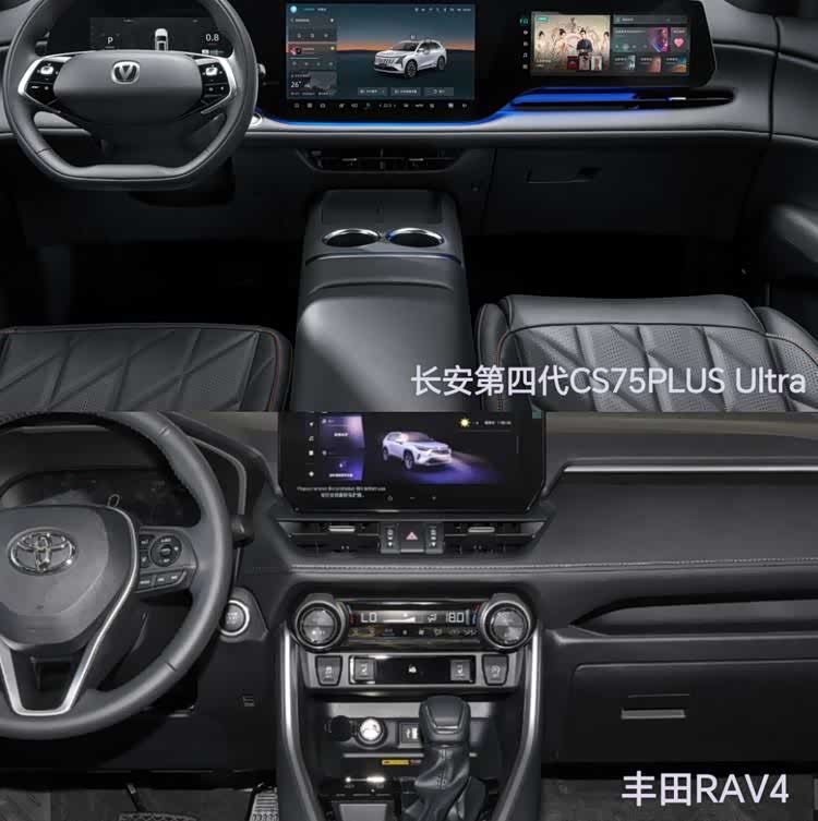 对于丰田RAV4,其7英寸的仪表盘和10.25英寸的中控屏组合虽然足够使用,但在视觉冲击力及交互体验方面,它显然有些保守。尤其在语音交互和车机互联功能方面,表现略显平庸。相较之下,在这个人工智能高速发展的时代,长安第四代CS75PLUS Ultra更能够精准把握消费者的需求,提供更加出色的体验。