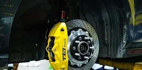 改装产品清单如下:选用国产刹车改装品牌TEI Racing,针对长安 锐程CC(参数|询价)车型进行改装(原车18寸轮毂)。改装内容主要包括前轮安装P40NS黄色大四活塞卡钳,配备330x28mm带有打孔划线纹的分体盘。此外,还选用了TEI Racing钢喉和DOT5.1刹车油。