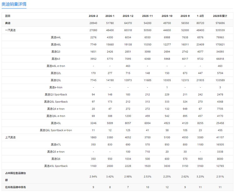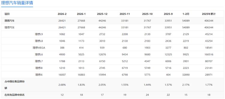 当然还是来看数据吧,数据是公开可查的汽车零售销量资料,以下数据均为2026年2月汽车品牌零售销量统计数据,