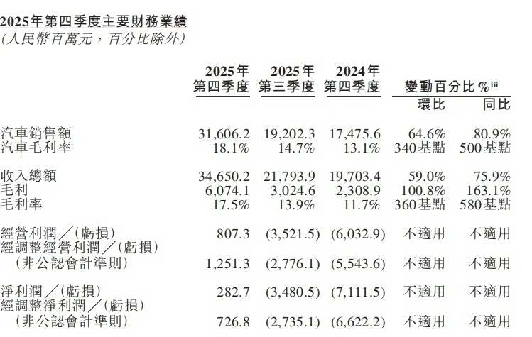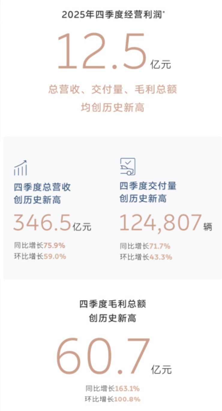 2025年第四季度,录得2.83亿元的净利润,让这家累计亏损超千亿的车企,第一次尝到了季度盈利的滋味。资本市场也很给面子,财报一发,蔚来股价大涨超15%,市值重回千亿港元。单看这个数字,确实值得庆祝。但如果你以为蔚来从此就能高枕无忧,那可能高兴得太早了。
