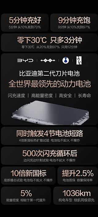 2026年3月5日,比亚迪正式发布第二代刀片电池,凭借“常温5分钟充好、9分钟充饱,零下30度低温仅多3分钟”的闪充表现,硬核破局行业痛点,一举攻克行业“充电慢”“低温充电难”两大痛点,更以高能量密度、长寿命、高安全的全能优势,重新定义全球领先动力电池标准。针对用户普遍关注的“闪充是否影响电池寿命与安全”的核心疑虑,比亚迪第二代刀片电池以创新技术、严苛测试与升级质保给出硬核答案,实现闪充与耐用、安全的完美兼得。