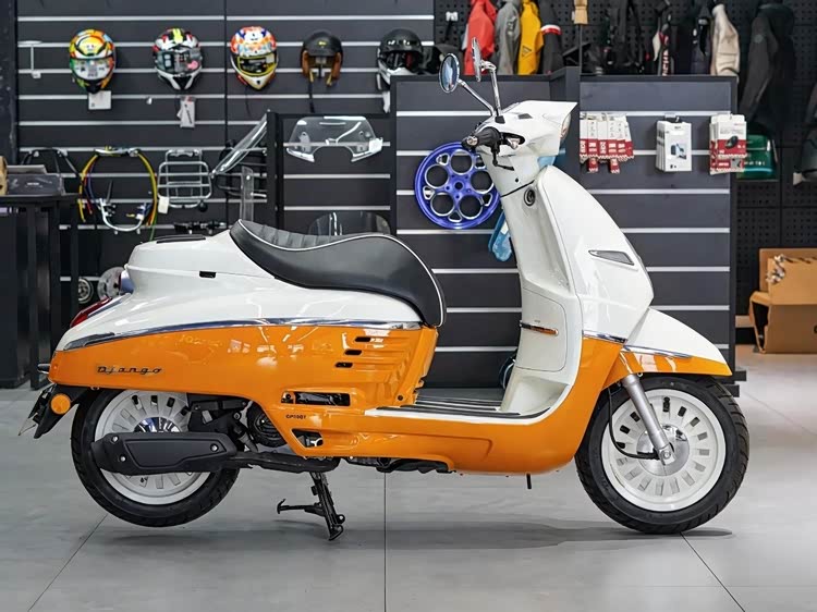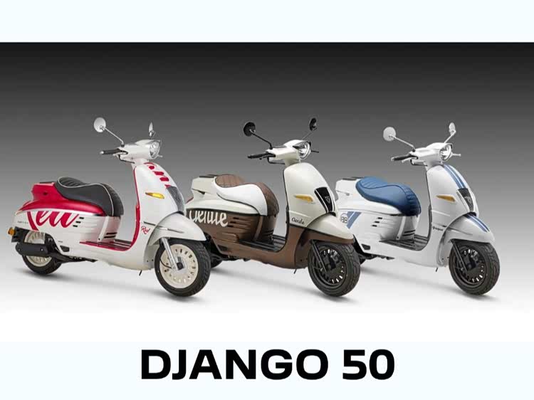 DJANGO 50动力系统搭载一台49.5cc单缸四冲程发动机,采用整体式缸头设计,发动机运转稳定,噪音可控。最大马力3.5匹,最大功率2.6kW/7500rpm,最大扭矩3.2Nm@7300rpm,动力输出线性平顺,动力储备满足日常通勤需求,最高时速45km/h,比常规两轮电动车快一点。官方百公里油耗1.8L/100km,燃油经济性出色。