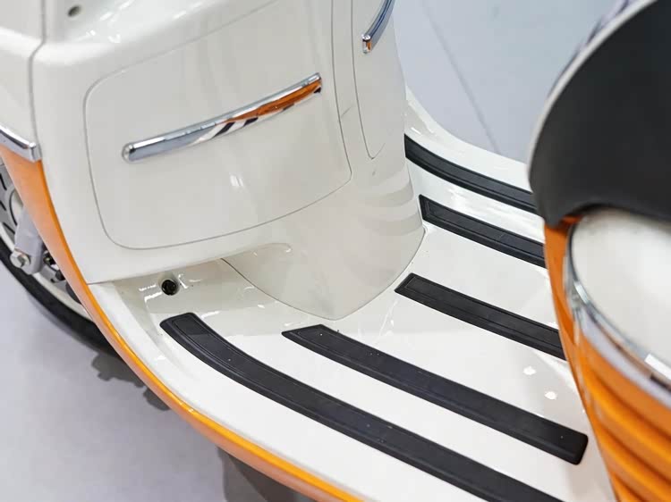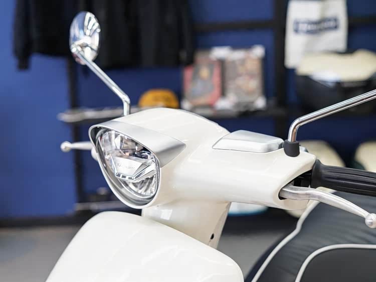 26款标致DJANGO 50延续该系列纯正法式复古设计语言,整车线条圆润流畅,优雅气质拉满。车身标志性元素突出,瀑布式前格栅、盾形狮标、撞色涂装形成高辨识度的家族特征,镀铬后视镜、扶手与车身饰条贯穿全车,搭配“毛毛虫”单人座垫,完美复刻了经典车型的复古韵味。视觉效果协调,兼顾复古美学与日常实用性。