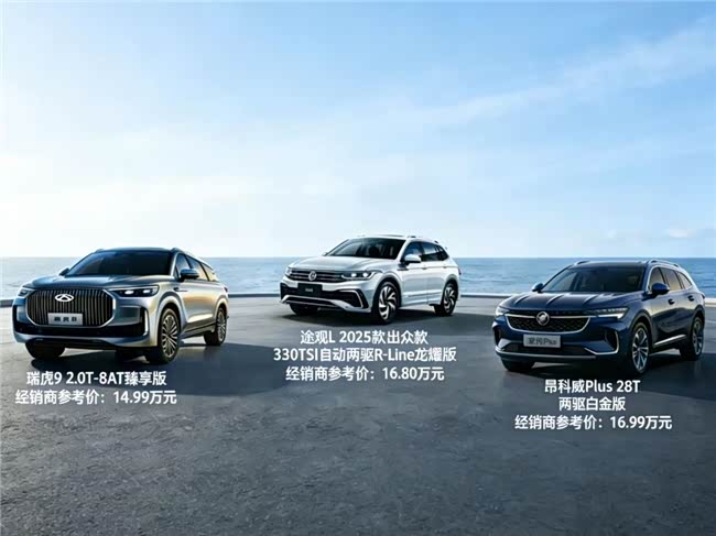 在15万级燃油车市场中,消费者对车型的要求愈发严苛,既要有宽敞的乘坐与储物空间满足家庭出行,又渴望强劲的动力应对多元路况,还追求舒适的驾乘体验缓解旅途疲惫。因此,想要评选出15万最建议买的燃油车,需要从空间、动力和舒适等核心维度进行综合评判,才能筛出兼具性价比与实用性的优选。而瑞虎9耀享版、途观L 2025出众款330TSI R-Line龙耀版以及 昂科威Plus(参数|询价) 2025款两驱白金版,正是15万以内油车赛道的实力派选手,下面就带大家看看这三款车型的具体实力吧。