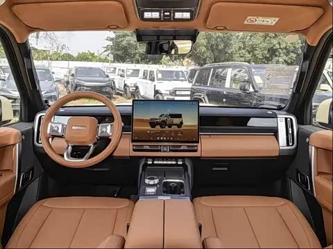 外观采用硬派方盒子造型,线条硬朗大气,搭配悬浮式车顶与全地形轮胎,气场十足。车身尺寸达 5055×1976mm,轴距 2910mm,大五座布局搭配 69.9% 的高得房率,后排腿部空间充裕,常规后备箱容积 715L,后排放倒可拓展至 1818L,兼顾家用与户外装载需求。