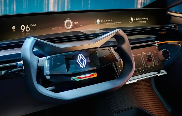 新车前脸设计极具辨识度,前风挡与机盖处于同一弧面,线条凌厉且复杂,勾勒出饱满的车头轮廓,乍一看与理想i6有几分相似,但细节处的设计更具个性。分体式大灯搭配可发光的雷诺LOGO,营造出较为强烈的运动感与机甲气息。
