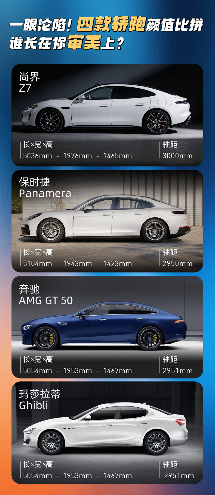 首先是颜值和设计。从工信部披露的数据来看,尚界Z7车长:5036mm,车宽:1976mm,车高:1465mm,轴距:3000mm,妥妥的中大型轿车。配合新车炫酷个性车色、高级型面、动感造型、都市流光大灯等前卫设计,无疑将全方位满足年轻用户的多元化审美需求,成为年轻人彰显个性态度的移动时尚符号。