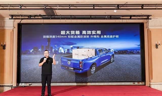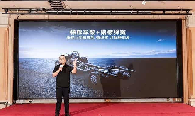 底盘悬架方面,新车搭载前双叉臂独立悬架+后钢板弹簧非独立悬架。搭载前双叉臂独立悬架+后钢板弹簧非独立悬架,可提供充足的支撑性,钢板弹簧悬架可提供充足的支撑性,能够提供更出色的承载性,帮助商用用户实现多拉快跑的目标。此外,2023款商用炮采用高强度笼型车身、高强度前防撞梁,整车高强度钢占比高达48%以上,高承载的同时还能保障整车安全。